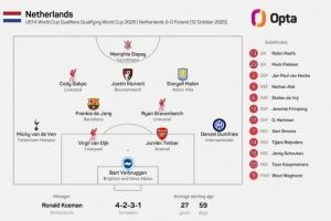 体育资讯10月13日讯 世预赛欧洲区小组赛,荷兰在主场迎战芬兰。本场比赛,荷兰再次排出了没有任何一名荷甲球员的首发阵容,这是橙衣军团今年第5次做出如此安排。此前,荷兰国家队所有年份没有排出荷甲球员的首发阵容也仅有5次而已。