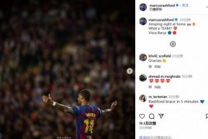 在社交媒体上,拉什福德庆祝了本场比赛的胜利,他写道:精彩的主场之夜,多么棒的一支球队!加油巴萨!