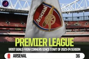 据Opta数据统计,自2023-24赛季开始以来,英超角球进球最多榜单: